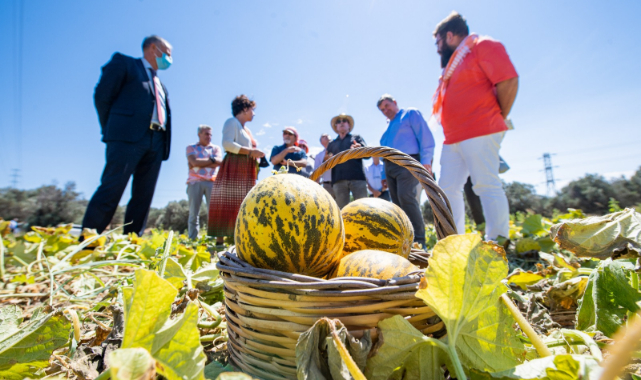 Büyükşehir Belediyesi, yöreye has Çeşme kavunu için Türk Patent ve Marka Kurumu’ndan coğrafi işaret belgesini aldı. İzmir Büyükşehir Belediyesi’nin ilk tescilli ürünü olan Çeşme kavunuyla üreticiler yeniden heyecanlı günlere döndü. İzmir Köy Koop Birliği Başkanı Neptün Soyer, Çeşme Belediye Başkanı Ekrem Onan ve İzmir Büyükşehir Belediyesi Genel Sekreter Yardımcısı Ertuğrul Tugay da Çeşmeli kavun üreticilerini hasat yerlerinde ziyaret etti. Lezzeti ve dayanıklılığıyla öne çıkan çeşme kavunu, üreticiye pazarlama konusunda büyük avantajlar sağlarken coğrafi işaret sayesinde de iç ve dış pazarlarda ürünlerini daha çok tanıtabilme imkanı sunacak.Sıradan bir kavundan bahsetmiyoruz