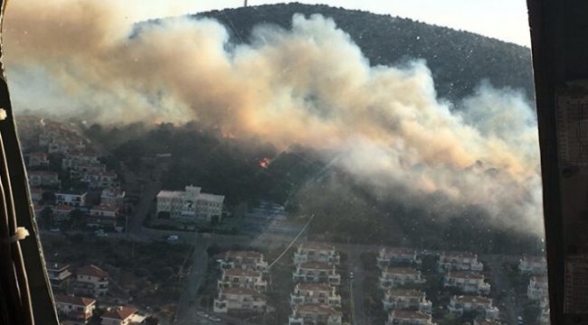 İzmir'in Çeşme ilçesinde ormanlık alanda çıkan yangına müdahale ediliyor.