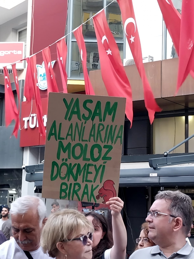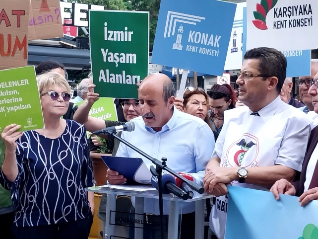 "ÜLKEMİZİN HER KÖŞESİNDE VARIZ, VAR OLACAĞIZ"Mumcu, çevre dernekleri ve STK'lar adına gerçekleştirdiği basın açıklamasını sonlandırırken şu ifadeleri kullandı: "Bizler çevre sorunlarının yaşamdan, toplumsal sorunlardan ayrılamayacağını biliyoruz. Çevre mücadelesinin aynı zamanda bir yaşam mücadelesi, hak mücadelesi, emek mücadelesi, adalet mücadelesi, demokrasi mücadelesi olduğunu biliyoruz. Bu mücadele içerisinde bilim, mühendislik ve planlama ışığında kamu ve halkın yararına, kentimizde, ülkemizin her köşesinde varız, var olacağız. İzmir Halkı Anayasal hakkını; sağlıklı yaşam hakkını, yaşam alanlarını, havasını, suyunu, toprağını korumak için mücadele ediyor. Doğadan ve yaşamdan yana bu mücadeleyi destekliyor, 'Bu kentte ekolojik yıkıma karşı dayanışma var.' diyoruz."