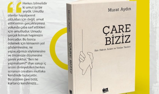Yargıçlık, Cumhuriyet Savcılığı ve Avukatlık yaparak yaşamının 30 yılını Hukuk alanına ayıran ve son 4 yıldır siyasetin içinde aktif rol alan Murat Aydın’ın yazılarından derlenen ‘Çare Biziz – Hak, Hukuk, Adalet ve Vicdan Yazıları’ isimli kitap Biz Kitap Yayınevi’nden çıktı.