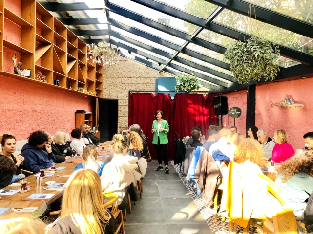 Şeffaf ve doğrudan katılımcı bir yönetim anlayışında öncelikle temsil imkanı daha az olan kesimlerin sesinin duyulması gerektiğini belirten KINAY, sendika üyesi öğretmenlerle kahvaltıda buluştu. Yoğun bir katılımla verimli bir toplantı gerçekleşirken, eğitim emekçileri ile eğitimden, ailelere, özel gereksinimlere, bilim, sanat ve spora teşvikten, istismara kadar gençler ve çocuklar için atılabilecek her adımla ilgili fikir alışverişinde bulunuldu. Öte yandan atanamayan ya da sosyal hakları yönünden sorunlar yaşayan eğitimcilerle yerel yönetimler arasında yapılması gereken işbirlikleri de toplantıda ele alınan önemli konulardan biri oldu.