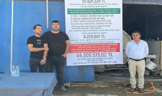 Tarım Reformu Genel Müdürlüğü Kontrolörler Başkanlığı 14.03.2024 tarihli raporunda tespit edilen eski yönetim tarafından Kooperatifin kötü niyetli olarak zarara uğratılması sonucu toplam tespit edilen miktar 44 milyon 305 bin 575 lira.