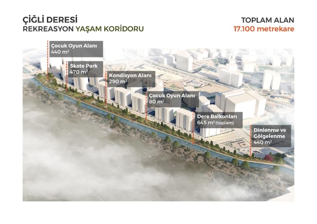 ATAŞEHİR’DE ‘YAŞAM KORİDORU’ EVKA-5’TE KENT ORMANIAtaşehir Park Yaşam’ın olduğu bölgede, ASOB deresi olarak anılan yatakta “Yaşam Koridoru” adını verdikleri projeyi hayata geçireceklerini söyleyen CHP Başkan Adayı Onur Emrah Yıldız; şunları söyledi; “Atıl bir vaziyette bulunan alanda yeni bir yaşam alanı oluşturacağız. Çiğli Yaşam Koridoru içinde; çocuk oyun alanları, yürüyüş yolları, dinlenme alanları ve skate parkları gibi birçok sosyal donatıyı bulunduracak. Çiğli’de ilk olma özelliği taşıyacak bu ekolojik koridoru 17.500m2’lik bir alanda planladık.” Çiğli’nin Harmandalı çöpü gibi önemli sorunları olduğunu, bu yükten kurtulması gerektiğini belirten Yıldız; doğa dostu bir Çiğli için çalışmalarını da bu mücadeleyle paralel götüreceklerini söyledi. Yıldız; “Evka-5 bölgesinde 50 hektar alanda oluşturacağımız ormanlık alan ile Çiğli’ye nefes olacağız. Kent Ormanı’mızın içinde halkımızın yararlanacağı mesire alanı, kır düğün salonu, camping alanı, çocuk oyun alanları ve kır lokantaları da olacak. İKLİM DEĞİŞİKLİĞİ VE GERİ DÖNÜŞÜMDE ÖNEMLİ ADIMLAR