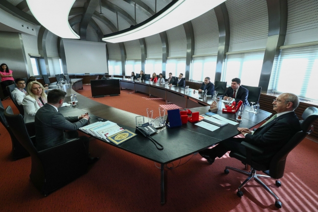 Buca Belediye Başkanı Erhan Kılıç, uluslararası yarışmalarda aldığı madalyalarla ülkemize büyük bir gurur yaşatan Buca Belediyesi Kızılçullu Bilim ve Sanat Merkezi’nin öğretmen ve öğrencileri ile beraber CHP Genel Başkanı Kemal Kılıçdaroğlu’nu makamında ziyaret etti.