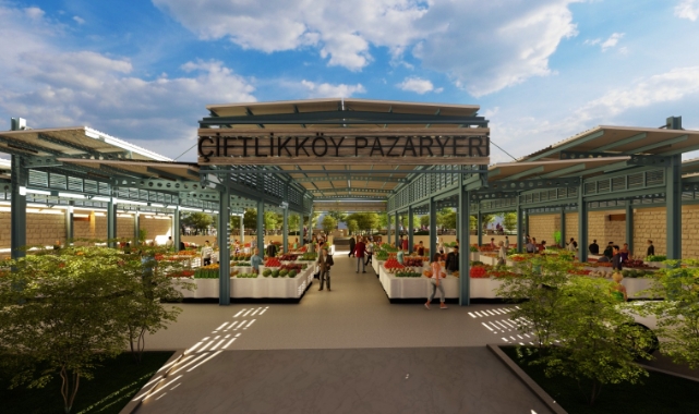 Çiftlikköy’de Kapalı Pazar yeri projesi için bir süredir çalışmalara başlayan Çeşme Belediyesi yatırım ve altyapı hamlelerine bir yenisini daha ekledi. Toplam 2.200 metrekare alan üzerinde 15.400.000 TL maliyetle yapılan kapalı Pazar yeri sürdürülebilirlik kapsamında çevreci bir yaklaşımla yapılacak. Çatısında güneş enerji panelleri kendi elektriğini üretecek. Pazar yeri yağmur suyunu depolayarak yazın proje kapsamında tüm bitkilerin ihtiyacını kendi depolarından karşılayacak.