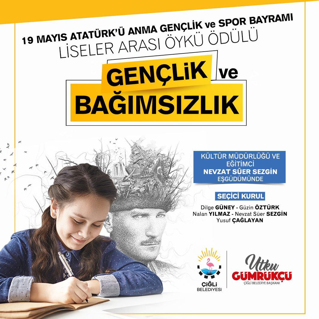 Çiğli Belediyesi Kültür ve Sosyal İşler Müdürlüğünce gençleri edebiyata yönlendirmek ve yazım dünyasına özgün eserler kazandırmalarını sağlamak adına 19 mayıs Atatürk’ü Anma, Gençlik ve Spor Bayramı'nın 102. yıl dönümü anısına liseler arasında düzenlenen “Gençlik ve Bağımsızlık” temalı öykü ödülünün kazananları açıklandı. Dilge Güney, Güzin Öztürk, Nalan Yılmaz, Yusuf Çağlayan ve Nevzat Süer Sezgin’in seçici kurul üyeliğini yaptığı öykü ödülünün birinciliğini “Özgürlük Yolu" öyküsüyle Irmak Dertsiz, ikinciliğini “Gözlerindeki Umut" öyküsüyle Derin Bıçakkıran, üçüncülüğünü ise “Nesil” isimli öyküsüyle Naz Nehir Değer elde etti.
