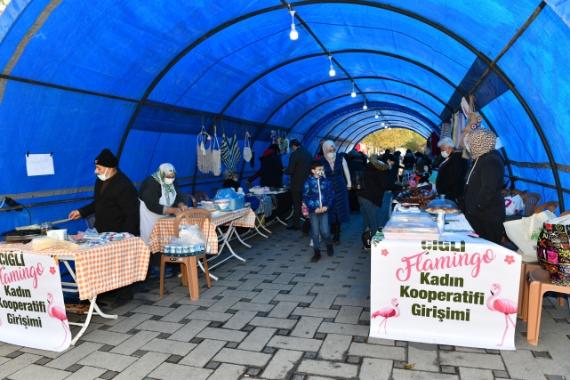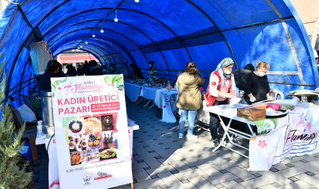 Başkan Utku Gümrükçü öncülüğünde kadınların sosyalleşmesi ve istihdama dahil edilmesi adına birçok farklı projeyi hayata geçiren Çiğli Belediyesi, Çiğli Flamingo Kadın Kooperatifi ile birlikte Kasaplar Meydanı’nda Kadın Üretici Pazarı kurdu. Pazarın açılışına Cumhuriyet Halk Partisi Çiğli İlçe Başkanı Mert Özcan, İYİ Parti Çiğli İlçe Başkanı Özgür Doğan, Çiğli Kent Konseyi Başkanı İbrahim İncesu, sivil toplum kuruluşu temsilcileri ve muhtarlar katıldı. Kadınların el emeğiyle ürettikleri ve stantlarda sattıkları gözleme, kek, poğaça, sos ve reçel gibi gıda ürünlerin yanı sıra takı, sabun, örgü, origami bebek ve ahşap ürünlere vatandaşlar yoğun ilgi gösterdi. Kadın Üretici Pazarı 31 Aralık 2021 tarihine kadar Çiğlili ve İzmirli misafirlerine kapılarını açık tutmaya devam edecek.