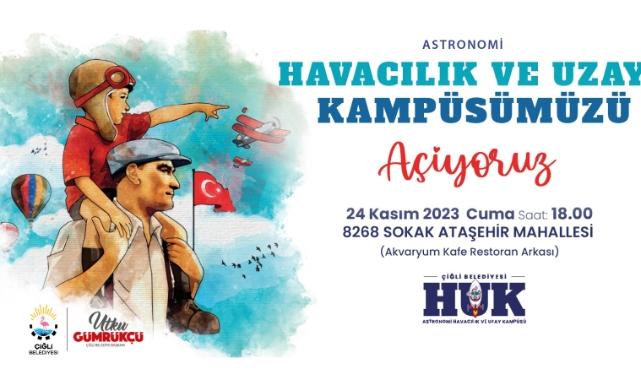 Başkan Utku Gümrükçü’nün bizzat ilgilendiği ve yoğun mesai harcadığı Astronomi Havacılık ve Uzay Kampüsü, 24 Kasım Cuma günü düzenlenecek törenle hizmete girecek. Ataşehir Mahallesi’nde gerçekleştirilecek tören saat 18:00’de başlayacak. Açılış töreninde 24 Kasım Öğretmenler Günü dolayısıyla ilçede görev yapan öğretmenler için de kokteyl düzenlenecek.