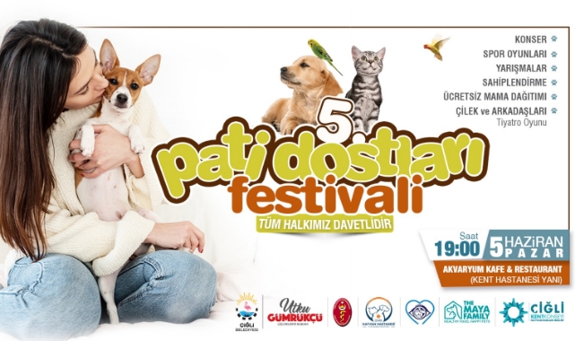 Çiğli Belediyesinin öncülüğünde Türk Veteriner Hekimleri Birliği, İzmir Hayvan Hastanesi, The Maya Family ve Çiğli Kent Konseyi Hayvan Hakları Meclisinin katkılarıyla düzenlenecek 5. Pati Dostları Festivali 5 Haziran Pazar günü Akvaryum Kafe Restoran’da gerçekleştirilecek. Festivalde, konser, yarışmalar ve spor oyunlarının yanı sıra sahiplendirme ve mama dağıtımı yapılacak. Çiğli Belediyesi Çocuk Tiyatrosu, hayvanseverler ve patili dostlar için “Çilek ve Arkadaşları” isimli oyunu sahneleyecek.