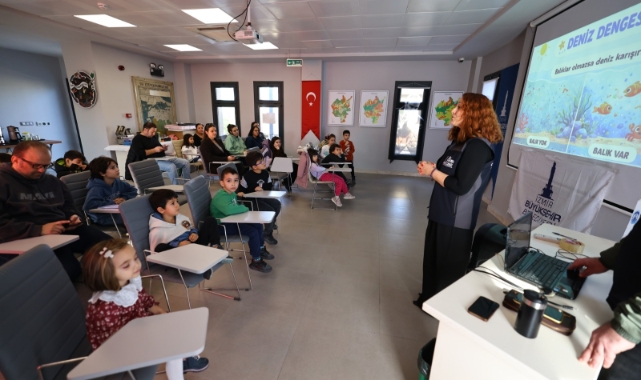 Su Ürünleri Yüksek Mühendisi Nesrin Ayrancı ve Su Ürünleri Teknikeri Mert Kandemir’in sunumuyla gerçekleşen etkinlikte, çocuklara denizlerin gizemli dünyası eğlenceli ve öğretici bir dille anlatıldı. Çocuklar için hazırlanan sunumda; balıklara zarar veren etkenler, deniz ekosisteminin korunması, deniz dengesinin önemi ve insanların denizler için yapması gerekenler gibi konular ele alındı. Renkli görseller ve eğlenceli anlatımlarla çocuklara çevre bilinci kazandırıldı.