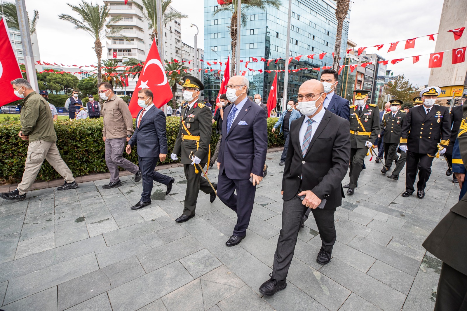 29 Ekim cumhuriyet bayramı nedeniyle İzmir Valiliği tarafından Cumhuriyet Meydanı'nda çelenk töreni düzenlendi. Törene İzmir Valisi Yavuz Selim Köşger, İzmir Büyükşehir Belediye Başkanı Tunç Soyer, Ege Ordusu ve Garnizon Komutanı Korgeneral Ali Sivri, CHP İzmir milletvekilleri Tacettin Bayır, Özcan Purçu, Atila Sertel, Murat Bakan, CHP İzmir İl Başkanı Deniz Yücel, AK Parti İzmir İl Başkanı Kerem Ali Sürekli, MHP İzmir İl Başkanı Veysel Şahin, İzmir'deki üniversitelerin rektörleri ve askeri yetkililer katıldı.