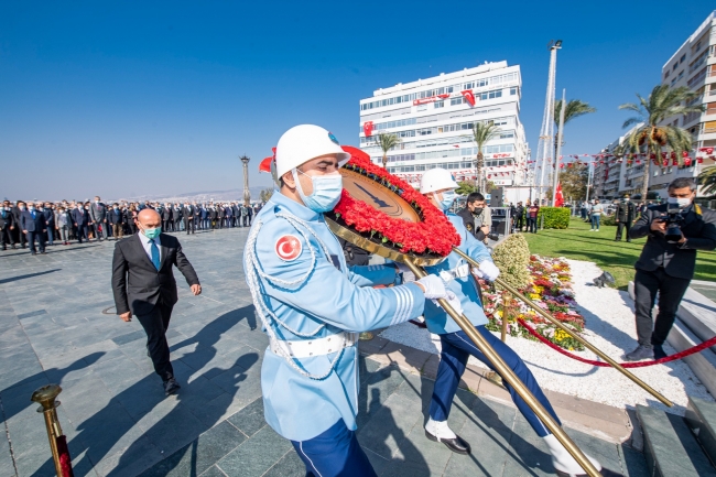 Cumhuriyetin kuruluşunun 98. yıl dönümü nedeniyle Cumhuriyet Meydanı’nda tören düzenlendi. Törene İzmir Valisi Yavuz Selim Köşger, İzmir Büyükşehir Belediye Başkanı Tunç Soyer, İzmir Büyükşehir Belediyesi Başkan Vekili Mustafa Özuslu, Ege Ordusu ve Garnizon Komutanı Orgeneral Ali Sivri, siyasi partilerin milletvekilleri ile il başkanları katıldı. Tören, Atatürk Anıtı’na çelenk konulmasının ardından saygı duruşu ve İstiklal Marşı’nın okunmasıyla son buldu.