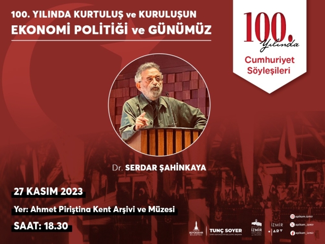 İzmir Büyükşehir Belediyesi Kent Arşivi, Müzeler ve Kütüphaneler Şube Müdürlüğü tarafından düzenlenen, “Cumhuriyet Söyleşileri”nin ikincisi 27 Kasım Pazartesi yapılacak. “100. Yılında Kurtuluş ve Kuruluşun Ekonomi Politiği ve Günümüz” konulu söyleşinin konuğu ise Dr. Serdar Şahinkaya olacak. Ahmet Piriştina Kent Arşivi ve Müzesi’nde (APİKAM) yapılacak söyleşi, saat 18.30’da başlayacak. Cumhuriyet Söyleşileri’nin ilki Prof. Dr. İbrahim Özden Kaboğlu’nun katılımıyla 26 Ekim’de “Cumhuriyet’in 100. Yılında Hukuk Politikaları” başlığıyla düzenlenmişti. Söyleşiler iki farklı mekanda yapılıyor