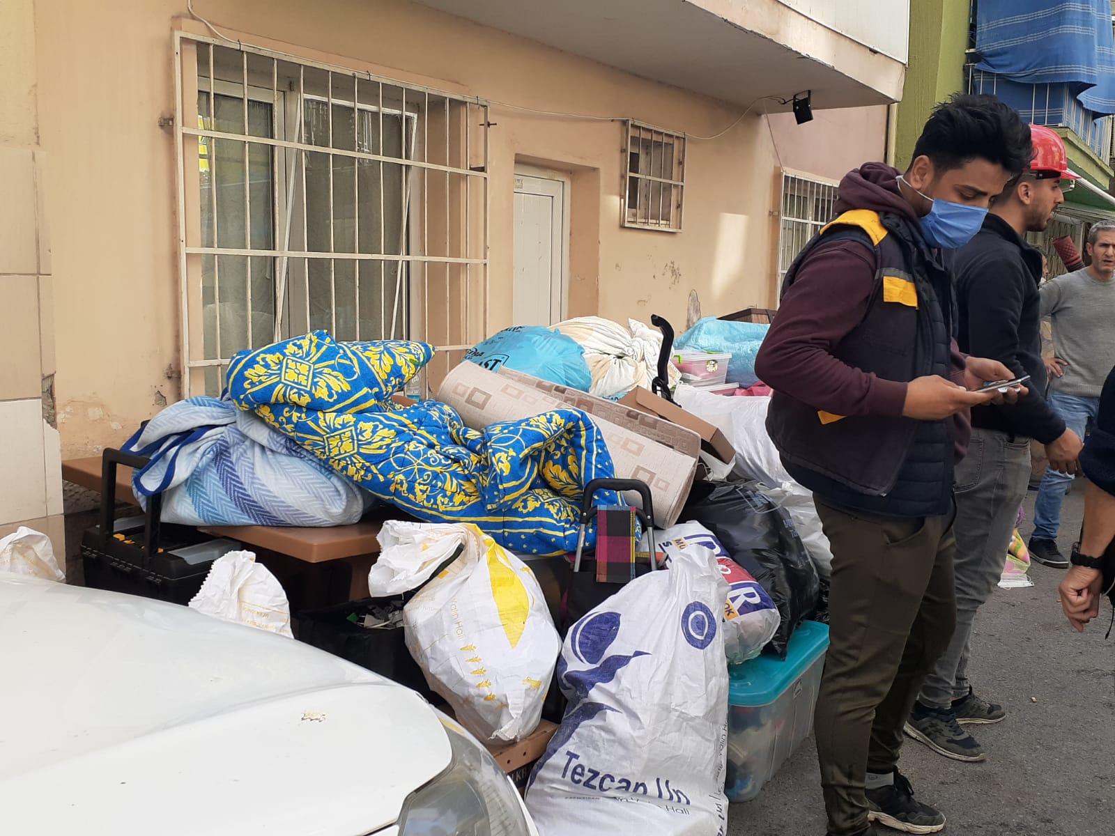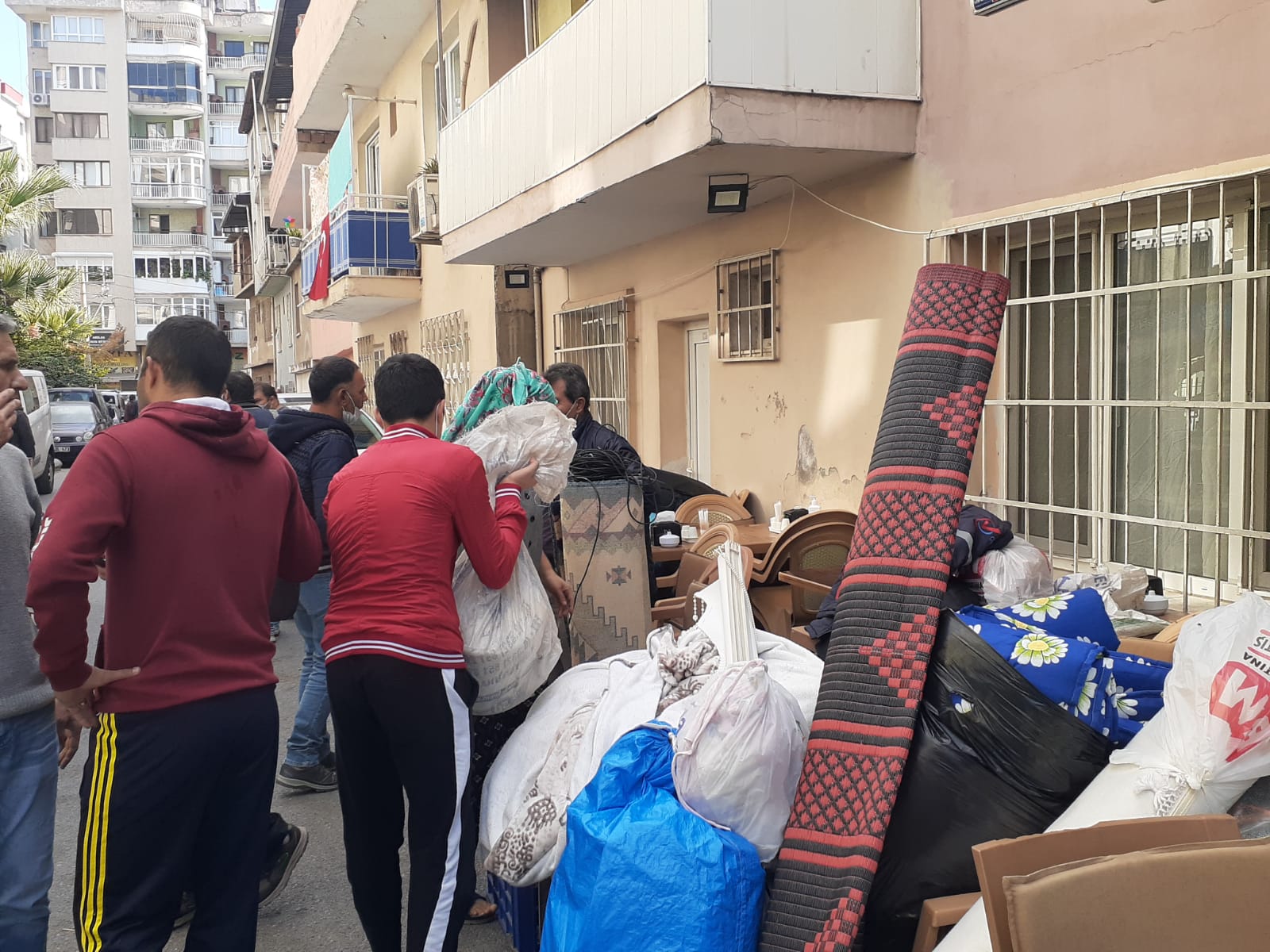 Ağır hasar görmüş binadan eşyalarını nakliye aracıyla alabildiklerini aktaran vatandaş, korku dolu anlar yaşadıklarını ifade etti. Bir saat içinde evlerimizi boşaltmak zorundayız diyen bina sakini, “Kendimize uygun bir ev bulamadık. Memleketimiz Kemalpaşa'da boş bir dükkan bulduk. Eşyalarımızı oraya taşıyoruz. Sırayla numara okunuyor ona göre biz de evlerimize çıkıyoruz. Biz Nakliye aracı tuttuk. Büyük eşyalarımızı her şeyimizi alıp götürüyoruz. Büyük bir badire atlattık. Çok korktuk, enkaz altında kalıp vefat edenlerden de tanıdıklarımız var. Hepimize büyük travma oldu. Allah bir daha yaşatmasın. Bir hafta önceye kadar evlerimizde otururken bir anda bu şekilde korkuyla taşınmak bizi çok etkiledi. Hiç unutamayacağımız acı bir olay bu. Herkese geçmiş olsun” diye konuştu.