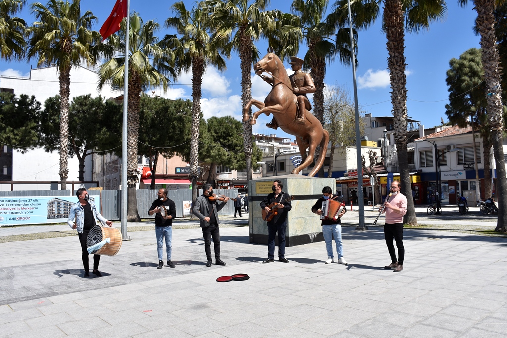 Dikili’de restoran ve kafelerde çalışarak geçimini müzisyenlikle sağlayan hemşehrilerini unutmayan Dikili Belediye Başkanı Başkan Adil Kırgöz, müzisyenlerin salgın döneminde yaşadıkları mağduriyetlerini bir nebze olsun azaltmak amacı ile sokak aralarında mini konserler gerçekleştirdi.