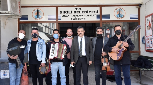 Desteğimiz sürecekKoronavirüs salgınının her sektörde olduğu gibi müzik sektörünü de olumsuz etkilediğini dile getiren Dikili Belediye Başkanı Adil Kırgöz, “Gelir kaybına uğrayan müzik sektörü çalışanlarına destek amacıyla böyle bir organizasyonu gerçekleştirdik. Hem ailesine ekmek götürme çabasında olan müzisyenlerimize destek olmak istedik hem de pandemi yüzünden evlerinde olan vatandaşlarımıza moral vermek istedik. İmkanlarımız dahilinde pandemiden dolayı zarar görmüş tüm meslek gruplarımızın ve ihtiyaç sahibi vatandaşlarımızın yanlarında olmaya devam edeceğiz” dedi.