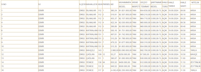 Arsa, bahçe, tarla ve zeytinlik vasfındaki taşınmazların satışının gerçekleştirilmesi durumunda, Dikili Belediyesi’nin kasasına toplam 26 milyon 564 bin lira girecek.