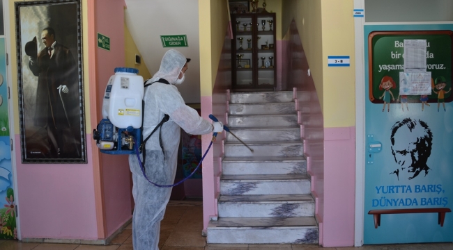 Yapılan çalışma ile okulların iç ve dış tüm alanları dezenfekte edildi. Belediye ekipleri oturma sıralarından, lavabolara, okul bahçelerinden, çöp kovalarına kadar her alanda baştan aşağı dezenfeksiyon çalışmalarını gerçekleştirdi.