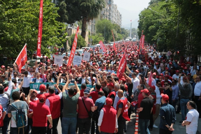 Açıklamanın tamamı şu şekilde:İzmir’in düşman işgalinden kurtuluşunun kutlama törenine katılımın yoğunluğu, katılımın coşkusundan fazlası ile rahatsız olan AKP, İBB Tunç Soyer’in, Mustafa Kemal Atatürk’ün gençliğe hitabesinden alıntı yaptığı konuşmasını bahane ederek adeta hedef gösterme kampanyası örgütlemeye çalışmıştır. Hayat pahalılığı altında ezilen, emekçi kitleleri üzerinde iktidar yetkisini hızla tüketen AKP istediği etkiyi yaratamayınca bu kez ‘bağımlı yargı’ erkini harekete geçirerek İBB Tunç Soyer’i yargılamanın hazırlığını yapmaktadır.Ülkede gri pasaportla adam kaçıranlara soruşturma açma, rüşvet yiyeni büyükelçi ata, ekonomik kriz yaşanamayacak kadar yüksek olduğu, enflasyon oranının %186 seviyesine ulaştığı, insanların geceleri yataklarına aç yattığı bir ortamda yönetenlerin yönetemediği bir durumda seçim üzeri gündem değiştirmek ve ayrıştırıcı bir dille manipüle ederek suni gündemlerinizi yaratıyorsunuz.Biz Emekçiler oynanan oyunun farkındayız. İzmir Büyükşehir belediyesinin İzmir halkının oldukça yüksek oyunu alarak seçilmiş başkanına geçmişte olduğu gibi bir kez daha kumpas kurulmaya çalışılmaktadır. Bu asla kabul edilmez. Emekçiler oylarına ve oyları ile seçilen İBB başkanına sahip çıkacaktır.DİSK EGE BÖLGE TEMSİLCİLİĞİ VE GENEL-İŞ SENDİKASI İZMİR ŞUBELERİ