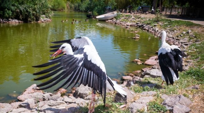 Doğada ikisi yaralı halde bulunan, diğer ikisi de güçten düştüğü için İzmir Büyükşehir Belediyesi Doğal Yaşam Parkı'nda tedaviye alınan dört leylek, veteriner hekimlerin desteğiyle sağlığına kavuştu. Ege Üniversitesi Fen Fakültesi Biyoloji Bölümü Öğretim Üyesi Doç. Dr. Ortaç Onmuş, yaklaşık iki yıldır burada bulunan leyleklerin doğaya bırakılmadan önce sağlık durumlarını kontrol etti. Gaga, kanat ve bacak uzunlukları ölçülen leylekler tanınması, izlenmesi ve korunması için halkalandı. Ardından Doğal Yaşam Parkı'ndaki Pekin Göleti alanı içerisine bırakılan leylekler, bir süre çevreyi inceledi. Daha sonra kanat çırparak havalanan leylekler, Doğal Yaşam Parkı'ndan ayrıldı.