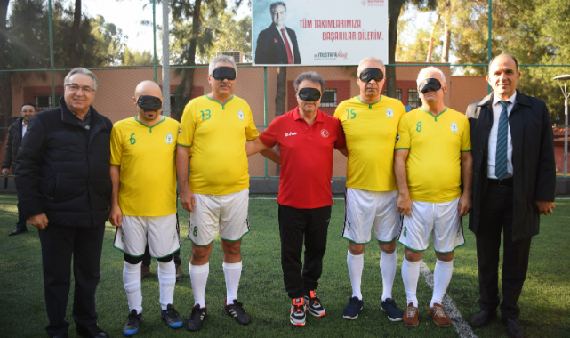 Başkan İduğ ve meclis üyelerinin gözlerini siyah bantla kapatarak sahaya çıktığı maçta, görme engellilerin müsabakalarında kullanılan, içinde ses çıkartan özel bir aparatın yer aldığı futbol topu kullanıldı.