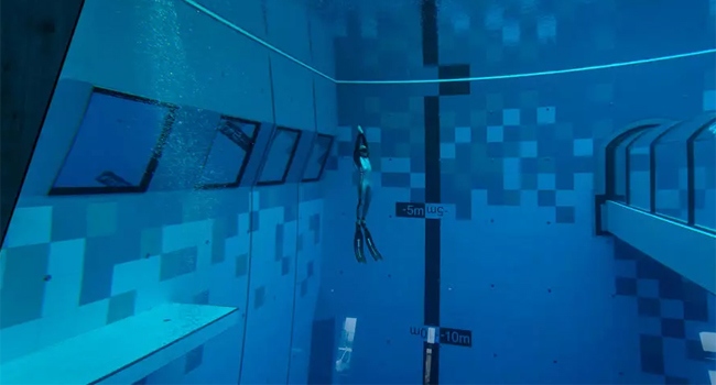 Derinliği 45,5 metre olan havuzda, normal bir havuzun 27 katı su bulunuyor. 'Deepspot' adı verilen havuz dalgıçlar için tasarlandı.
