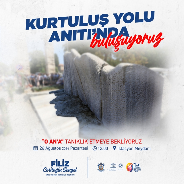Kurtuluş Savaşının zaferle tamamlandığı, ülkenin işgal kuvvetlerden temizlendiği Büyük Taarruzu kutlamak amacıyla düzenlenen törende Efes Selçuk bir kez daha, Heykeltıraş Mehmet Aksoy’un bilimle sanatı birleştiren eseri Kurtuluş Yolu Anıtı’nda Mustafa Kemal Atatürk’ün silüetinin görüldüğü ana tanıklık edecek.