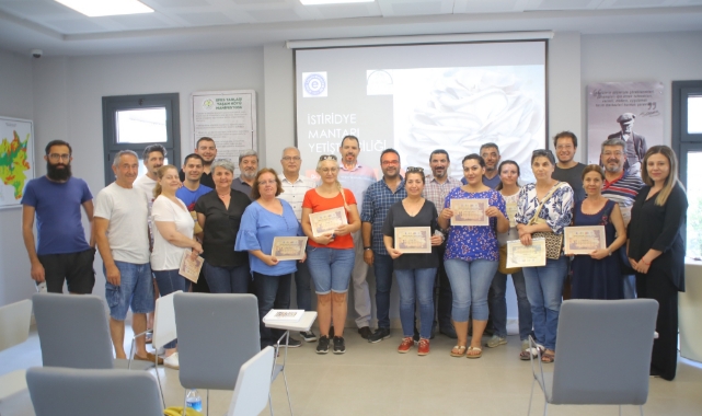 Efes Selçuk Belediyesi ile İzmir Ziraat Mühendisleri Odası arasında imzalanan protokol kapsamında Efes Tarlası Yaşam Köyü’nde üreticilere ve üretici olmak isteyen bireylere yönelik eğitimler devam ediyor. Yaşam Köyü’nün Haziran ayı eğitim takvimi kapsamında ilk olarak İstiridye Mantarı Yetiştiriciliği Eğitimi düzenlendi. Ege Üniversitesi Bergama Meslek Yüksekokulu Mantarcılık Programı Öğretim Görevlisi Dr. Mehmet Çetin tarafından verilen eğitimde Pleuratus (İstiridye) mantarının tanımı, dünya ve Türkiye’de mantarcılığın durumu, Pleuratus (İstiridye) mantarın üretim şekilleri, yetiştirmede karşılaşılan zorluklar, problemler ve hastalıklar gibi konu başlıklarında katılımcılara bilgi verdi.