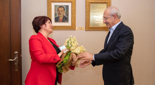 Parti Genel Merkezi’ndeki ziyarette, Kılıçdaroğlu’na Karaburun’un simgelerinden nergis çiçeklerini ve Belediyeye ait fabrikalarda kadınların ürettiği peynir ve zeytinyağını da armağan eden Erdoğan, “Karaburun’daki hemşehrilerimin ve üreticilerimizin selam ve teşekkürlerini, kendi ürettiğimiz ürünler ve nergislerimiz ile birlikte Sayın Genel Başkanımıza takdim etmekten mutluluk duydum.” dedi.