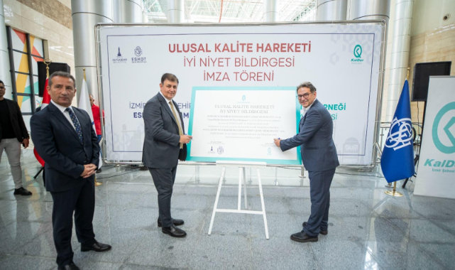 Tugay, ESHOT’un hizmet kalitesini artırmak, kurumun ve çalışanların kendini çağın koşullarına göre yenilemesini sağlamak için Türkiye Kalite Derneği (KalDer) İzmir Şubesi ile Ulusal Kalite Hareketi İyi Niyet Bildirgesi’ni imzaladı. 1600’den fazla otobüsle, 430 hatta, her gün ortalama 300 bin kilometre yol yapan; 11 bin durakta hizmet sunan ESHOT, bu çalışmayla hizmet kalitesi anlamında çıtayı daha da yükseltecek. İzmir Büyükşehir Belediyesi, toplu taşımanın can damarlarından ESHOT Genel Müdürlüğü’nün verimliliğini artırma, toplu ulaşım konforunu yükseltme, kurumun ve çalışanların çağın koşullarına göre yenilenip gelişmesini sağlama hedefiyle Türkiye Kalite Derneği (KalDer) İzmir Şubesi ile Ulusal Kalite Hareketi İyi Niyet Bildirgesi’ni imzaladı. Fuar İzmir C Holü Fuaye Alanı’nda düzenlenen törene, İzmir Büyükşehir Belediye Başkanı Dr. Cemil Tugay ile KalDer İzmir Şubesi Yönetim Kurulu Başkanı Hakan Ünlü, İzmir Büyükşehir Belediyesi Genel Sekreteri Barış Karcı, ESHOT Genel Müdürü Turgay Bozoğlu, İZFAŞ Genel Müdürü Canan Karaosmanoğlu Alıcı ile belediye bürokratları ve kurum çalışanları katıldı. “Avrupa ve dünya ölçeğinde başarısını ispatlamış bir model”