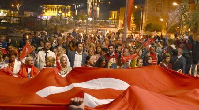 Yeni Foça’daki Fener Alayına katılan vatandaşlar, Belediye Meydanında toplanıp Marşlar söyleyerek Cumhuriyet Bayramı coşkusunu yaşadı.
