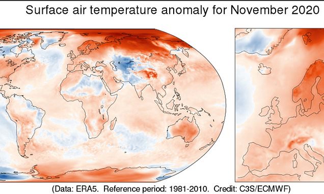 Avrupa Birliği Kopernik İklim Değişikliği Servisi'Anin hava ve yüzey sıcaklıklarını analiz ettiği rapor, kasım 2020'nin, 1981-2010 arasındaki ortalamadan 0.8 derece daha sıcak geçtiğini ortaya koydu.