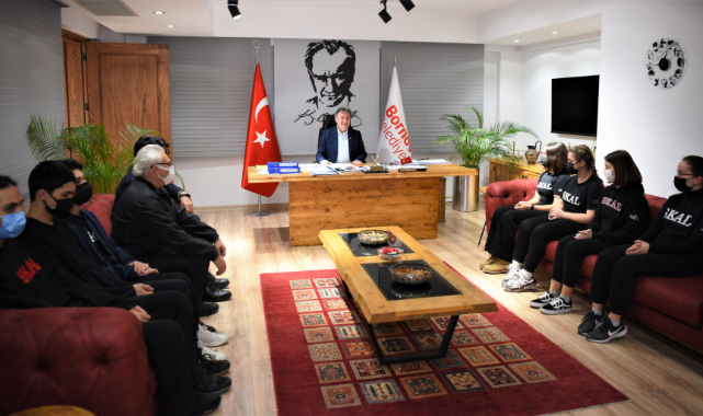 Başkan Mustafa İduğ, kendisinin de mezunu olduğu Suphi Koyuncuoğlu Anadolu Lisesi’nin İzmir birincisi olan, Deniz Baran Genç, Yusuf Serdar Tekin, Ömer Kaan Kırcal, Egemen Adalı’dan oluşan masa tenisi erkek takımı; İzmir üçüncüsü olan Duru Baykal, İrem Özaydın, Zeynep İrem Güler ve Gözde Çalışırlar’dan oluşan kız takımı ile Boksta 75 kiloda İzmir birincisi olan Ahmet Fikret Belpınar’ı makamında ağırladı. Okul müdürü Kazım Bulut, beden eğitimi öğretmenleri Antrenör Muzaffer Kadri Ayan ve Selami Bilgin’in eşliğinde gerçekleşen ziyarette gençlerin spor hedeflerini soran Başkan İduğ, başarıların devamını diledi.