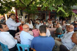 CHP Genel Sekreteri Kamil Okyay Sındır, Dikili Bademli’de zeytin üreticileri ile bir araya geldi, Dikili Ziraat Odasını ziyaret etti. Sındır, sanayinin geliştirilmesi ve üretimin desteklenmesine ilişkin AKP Tasarısının zeytinlik ve mera alanlarını yapılaşmaya açacağını söyledi.