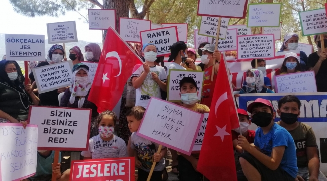 Adem SARIKAYA/ RE Enerji Yatırım Firması tarafından Efes Selçuk’un gökçealan Köyü’ne yapılmak istenen ve Çevresel Etki Değerlendirmesi (ÇED) süreci başlayan Jeotermal Enerji Santrali’ne karşı direniş sürüyor. İncir ve üzümü ile ünlü Gökçealan Mahallesi'nde yapılmak istenen Jeotermal Enerji Santrali için yapılacak halkın katılımı toplantısında yöre halkı ellerinde “Yetti gari, korkmuyoruz, haykırıyoruz JES’e hayır” pankartlarıyla eylem yaptı.