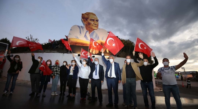 Cumhuriyet Tırı konvoy geçişinden sonra Sanatçı Turgut Kahraman’ın yağlı boya ile yaptığı dev bir Atatürk Panosu açılışı yapıldı. Güzelbahçe Belediye Başkanı Mustafa İnce açılışta bir konuşma yaptı. Başkan İnce, “Güzelbahçe’yi Cumhuriyet Tırımızla dolaştık. Finali Cumhuriyetimizin 97.yılına yakışır bir şekilde tamamlayacağız. Ama hep birlikte Atamıza bir söz vereceğiz önce. Sana sözümüz olsun büyük Atatürk, emanetinin yılmaz bekçileriyiz. İlkelerinin, devrimlerinin ve Cumhuriyetinin izinden kanımızın son damlasına kadar yılmada yürüyeceğimizi buradan bir kez daha haykırıyoruz. Yaşasın Cumhuriyet, yaşasın tam bağımsız Türkiye” dedi. Ardından Sanatçı Turgut Kahraman’ın yapmış olduğu Atatürk Panosunun açılışı gerçekleştirildi.