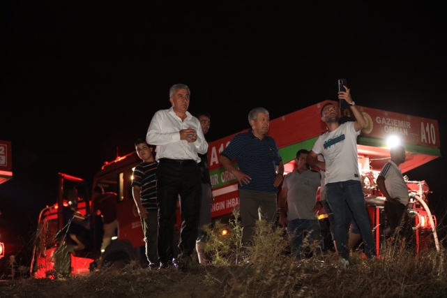 Yangının kontrol altına alındığı sıralarda Güzelbahçe Belediye Başkanı CHP'li Mustafa İnce de beraberindeki yardımcısı Kazım Çam ile birlikte alana gidip poz verdi. İnce, sosyal medya hesabından, "Geçmiş olsun Güzelbahçem" paylaşımını yaptı.