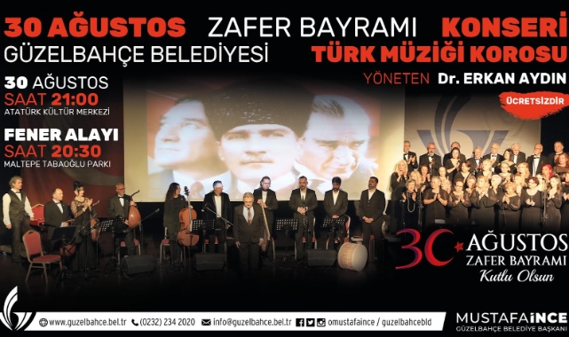 Güzelbahçe Belediyesi tarafından yüzlerce Güzelbahçelinin katılımıyla yapılacak zafer korteji ve konserle Zafer Bayramı coşkusu yaşanacak.