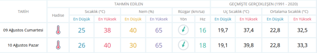 Hava durumu güneşliyken sıcaklıklar ise mevsim normallerinin üzerinde seyrettiği günlerde Cumartesi günü sıcaklık 38 dereceye kadar, Pazar günü ise 40 derece olacak.