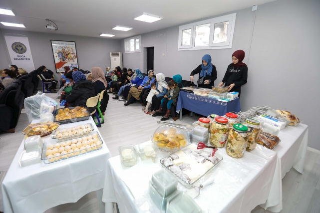 Buca Belediyesi, Cemal Yetkiner Etüt, Meslek ve Sanat Atölyesi kursiyerlerini İzmir Kadın Kuruluşları Birliği üyesi iş kadınları ile bir araya getirdi. Etkinlikte, kursiyerlerin el emeği ürünleri görücüye çıktı. İzmirli iş kadınlarına evlerinde hazırladıkları yiyeceklerin sunumunu yapan kursiyerler, katılımcılardan tam not aldı.