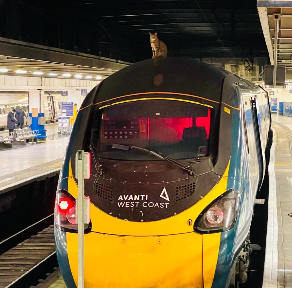 Londra'daki Euston İstasyonu'ndan Manchester'a gitmesi plananlanan hızlı trenin üzerindeki kedi, yetkililere panik anları yaşattı. Hareket saatinden 30 dakika önce fark edilen kedi, görevlilerin tüm çabalarına rağmen indirilemedi. Trenin üzerinden geçen 25 bin voltluk gerilim hatlarının kediyi çarpmasından endişe eden yetkililer aracı servis dışı bırakarak yolcuları tahliye etti.
