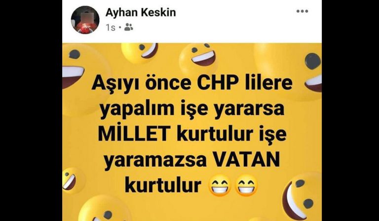 Tokat Erbaa’nın Alacabal Mahallesi’nde bulunan Güney Camisi’nin imamı Ayhan Keskin, Covid-19 aşısıyla ilgili sosyal medya hesabından bir paylaşım yaptı. Üstünde “Aşıyı önce CHP’lilere yapalım işe yararsa millet kurtulur, işe yaramazsa vatan kurtulur” yazılı bir görsel paylaşan imam hakkında ‘halkı kin ve düşmanlığa tahrik ve aşağılama’ suçlarını işlediği gerekçesiyle CHP İlçe Başkanı Hayri Kocaoğlu suç duyurusunda bulundu.İmam Keskin gelen tepkiler üzerine sosyal medya hesabını kapattı.