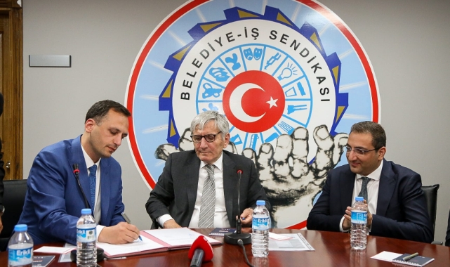 Bornova Belediyesi’nde 31 Mart seçimleri sonrası ilk toplu iş sözleşme kadrolu işçiler için imzalandı. Bornova Belediye Başkanı Ömer Eşki Belediye İş Sendikası’nın Konak’ın Basmane semtinde bulunan binasında düzenlenen törende, hazırlanan sözleşmeye Belediye İş Sendikası Genel Başkanı Nihat Yurdakul ve 6 Nolu Şube Başkanı Yılmaz Akan ile birlikte imza attı.