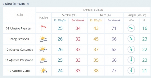 Yılın en sıcak günlerini geçiren İzmir'de yeni haftada dış ilçelerde gök gürültülü sağanak yağış bekleniyor.9 ilçede beklenen yağışların bugün ve yarın öğle saatlerinden sonra etkili olması beklenirken ani sel ve baskınlara karşı uyarı yapıldı. Yağışların kent merkezinde de oluşma ihtimalinin bulunduğu da kaydedildi.Yağışlı iki günün ardından sıcaklar kaldığı yerden devam edecek. Gece saatlerinde sıcaklıkların 24 derecenin altına düşmesi bekleniyor.İşte 5 Günlük hava Raporu: