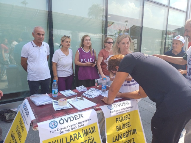 ANIL ARABACI / EGE’YE BAKIŞ - Milli Eğitim Bakanlığı'nın, Gençlik ve Spor Bakanlığı ve Diyanet İşleri Başkanlığı iş birliğinde hayata geçirilen ‘Çevreme Duyarlıyım, Değerlerime Sahip Çıkıyorum (ÇEDES)’ projesi kapsamında okullara ‘manevi danışman'’ adı altında; imam, müezzin, vaiz, din hizmetleri uzmanı ve kuran kursu öğreticisi atanmasına tepkiler sürüyor. Tüm Öğrenci Veliler Dayanışma Derneği (ÖVDER) İzmir Şubesi bugün Konak Meydanı’nda basın açıklaması yaparak projeye karşı imza kampanyası başlattı.