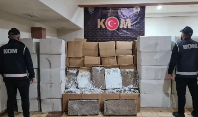 İzmir'in Torbalı ilçesinde, 1 depo ve 2 araçta yapılan aramada piyasa değeri 9 milyon 200 bin TL olan içi doldurulmuş 3 milyon 872 bin 400 makaron ele geçirildi.