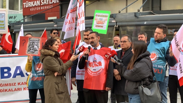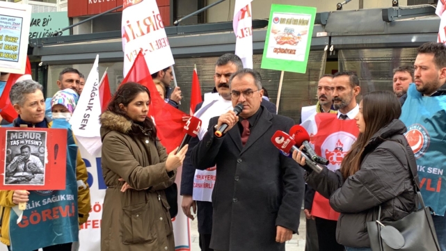 "BİZ BU ALDATMACANIN SON BULMASINI İSTİYORUZ"Bozat'ın ardından söz alan Anadolu Eğitim Sen İzmir Temsilcisi Mehmet Göreli ise konuşmasında şu ifadelere yer verdi:"Orta vadeli planda, TÜİK verileriyle alım gücü geriye düşürülmüş kamu çalışanları olarak bu düzenin değişmesini istiyoruz. TİS masasında hükümet bize yalnızca öngörülen enflasyon kadar artış teklif ediyor. Bu durum memurların maaş kaybı yaşamasına neden oluyor. Hükümet, altı ayın sonunda enflasyon farkı olarak verdiği kaybı sanki maaş artışıymış gibi takdim ediyor. Biz bu aldatmacanın son bulmasını istiyoruz. Enflasyon artışı üzerinden değil, alım gücünü gerçekten yerine getirebilecek bir zam talep ediyoruz"