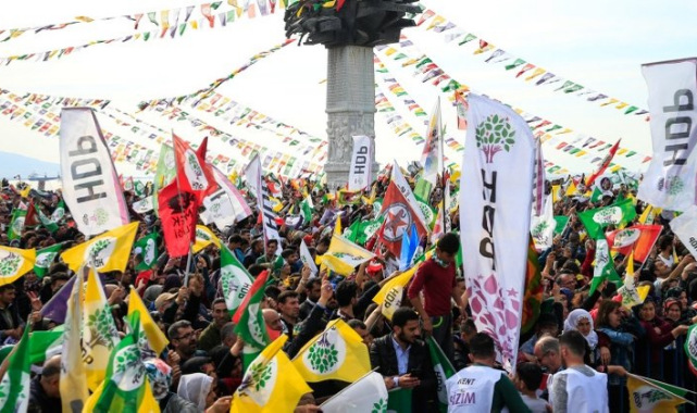 İzmir Gündoğdu Meydanı'nda düzenlenen Nevruz gösterisinde yasa dışı slogan atan, örgütün sözde sembolleri ile örgüt elebaşının fotoğrafının bulunduğu posterler açan şüphelilerin kimlikleri belirlendi.İzmir merkezli soruşturmada 59 kişi hakkında gözaltı kararı verildi. Belirlenen adreslere yapılan operasyonla 45 şüpheli gözaltına alındı. (TRT Haber)