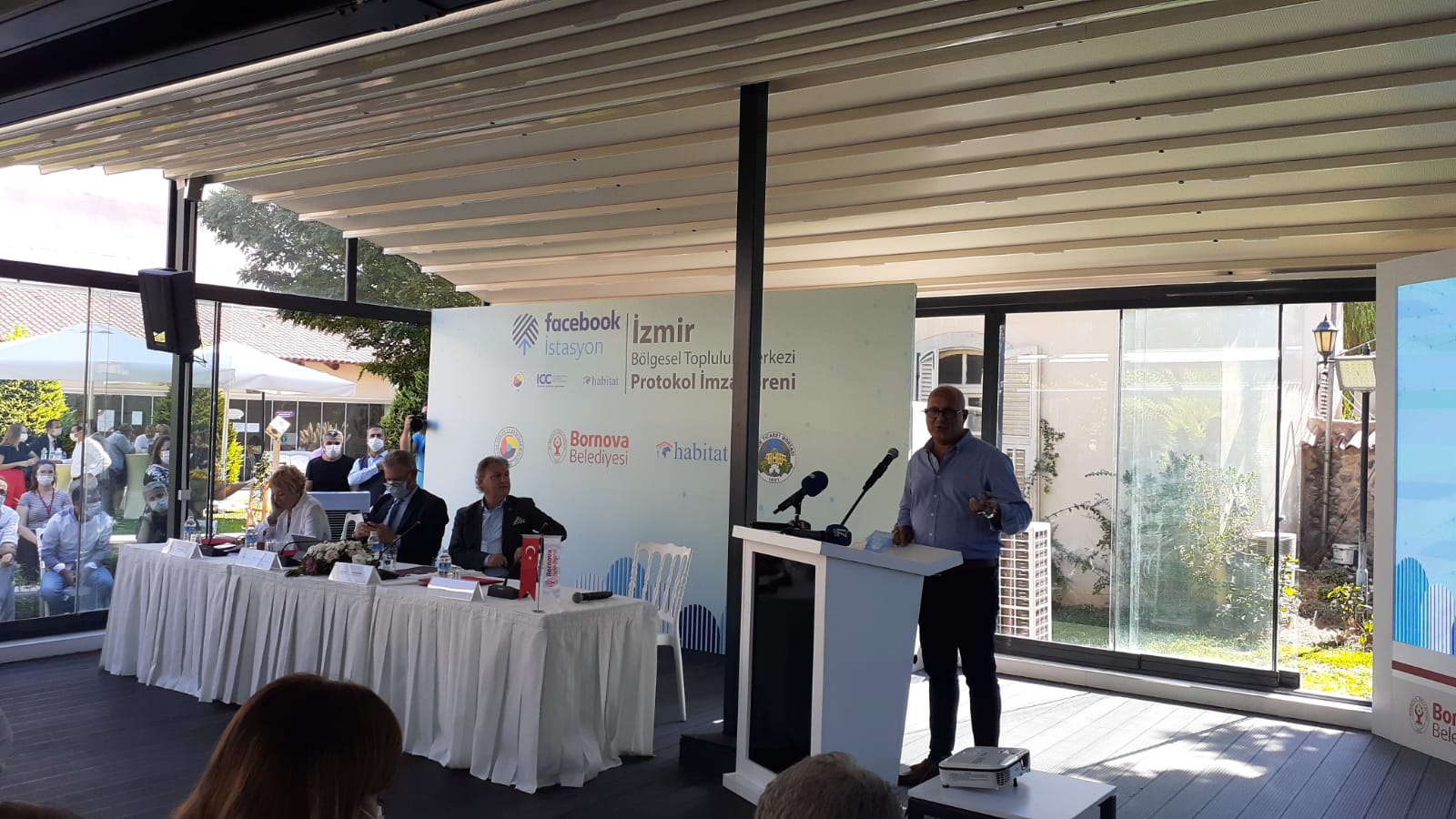 İlk İstasyon İzmir'de açıldıEge bölgesinde girişimcileri ve kobilerin bi araya geldikleri dijital etkinliklere yer vererek KOBİ'leri küreselleştirme hedefinde olduklarını aktaran Habitat Yönetim Kurulu Başkanı Sezai Hazır, 'Facebook Topluluk Merkezi 12 eylülde TOBB, ICC, habitat derneği ve ve facebook ortaklığında İstanbul'da açıldı. Ancak pandemi fiziki birlikteliği etkiledi. Türkiyede kobilerin dijitalleşmesi için bir ihtiyaçtı. KOBİlerin küreselleşmesi konusunda sıkıntı olduğu tespit edildi. KOBİlerin küreselleşmesi konusunda eğitimler veriyoruz. Facebook İstasyonlar ve Türkiye arasında iletişim köprüsü kurmaya çalışıyoruz. 12 ilde odalar aracılığıyla bu istasyonları açıyoruz. En son imzay İzmirle atmıştık ama ilk açılışı da İzmir'de yaptık.