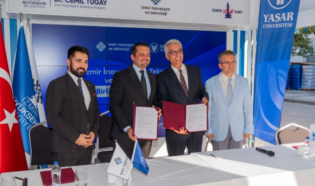 İzmir Büyükşehir Belediyesi şirketlerinden İzmir İnovasyon ve Teknoloji AŞ (İZTEKNOLOJİ), Yaşar Üniversitesi ile iş birliği protokolü imzaladı. 93. İzmir Enternasyonal Fuarı’nda yer alan İZTEKNOLOJİ standında gerçekleştirilen imza törenine İzmir Büyükşehir Belediyesi İnovasyon ve Teknoloji AŞ Yönetim Kurulu Başkanı Andaç Pamuk ve Genel Müdür Emrecan Durmaz, Yaşar Üniversitesi Rektörü Prof. Dr. Levent Kandiller ve Rektör Yardımcısı Prof. Dr. Yiğit Kazançoğlu katıldı. Protokol kapsamında İzmir’in teknolojik gelişimine katkı sunacak çeşitli ortak akademik projeler yürütülecek ve nitelikli insan kaynağı yetiştirilmesine yönelik kurum içi eğitimler, ortak staj programları ve kent halkına açık eğitim içerikleri düzenlenecek. Böylelikle, İzmir’in kamusal hizmetlerinin teknolojiye yön verecek şekilde geliştirilmesi amaçlanıyor.